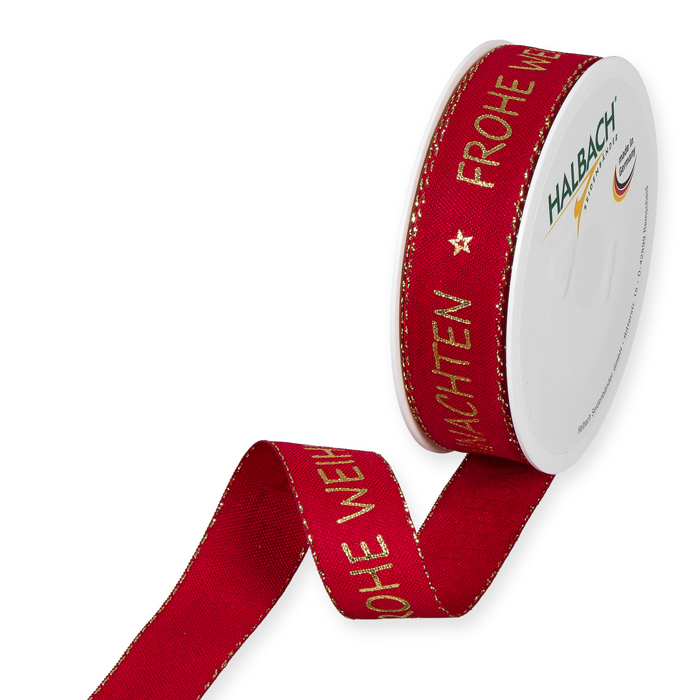Produktinformationen: Druckband "Frohe Weihnachten" mit Lurexkanten 1008