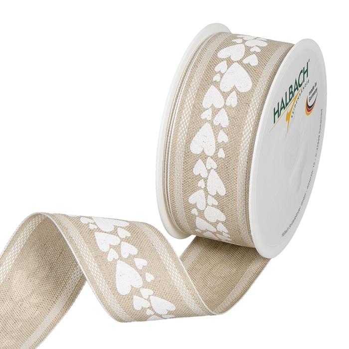 Produktinformationen: Leinen-Druckband "Herzen" mit Randstreifen 1149