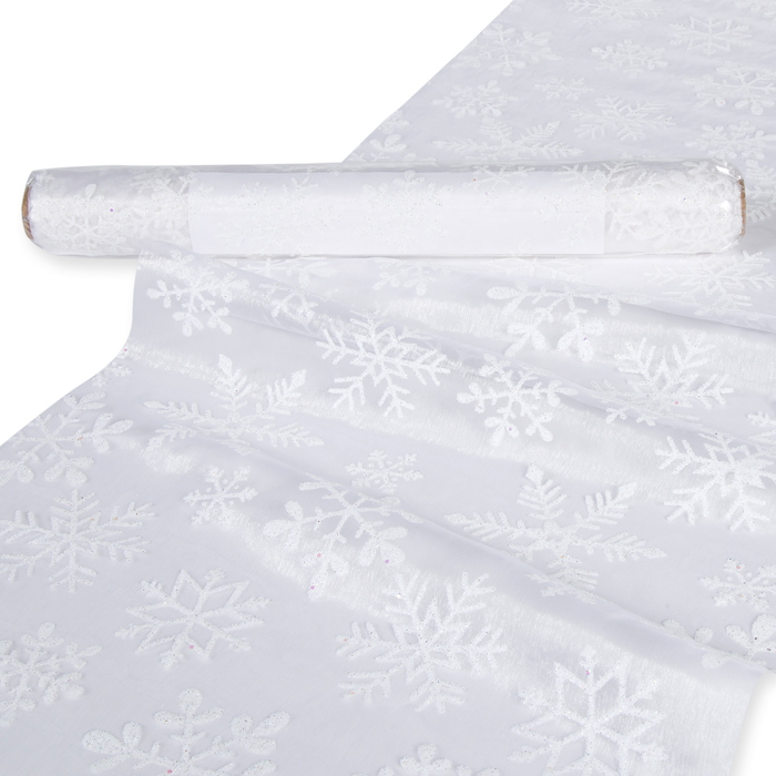 Produktinformationen: Organza mit Schaum-/Glitterdruck "Eiskristalle" 15568