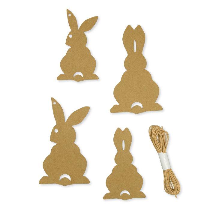 Papier-Anhänger "Hasen" 2 Formen und 2 Größen im Set mit ca. 3 m Kordel 19841