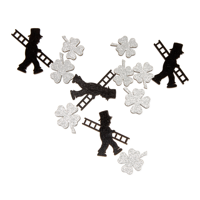 Schornsteinfeger ca. 5 x 4,5 cm, Kleeblätter ca. 3-3,5 cm