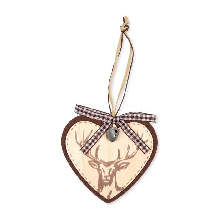 Filz/Holz-Hänger "Herz" mit Hirschkopf-Druck 30413