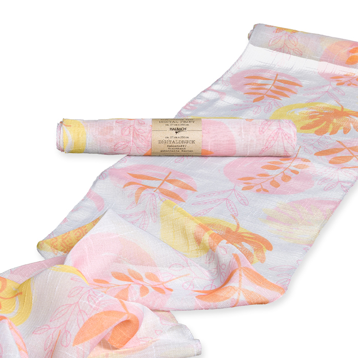 Dekostoff / Tischband "Blätter" / Digital-Motivdruck 74753