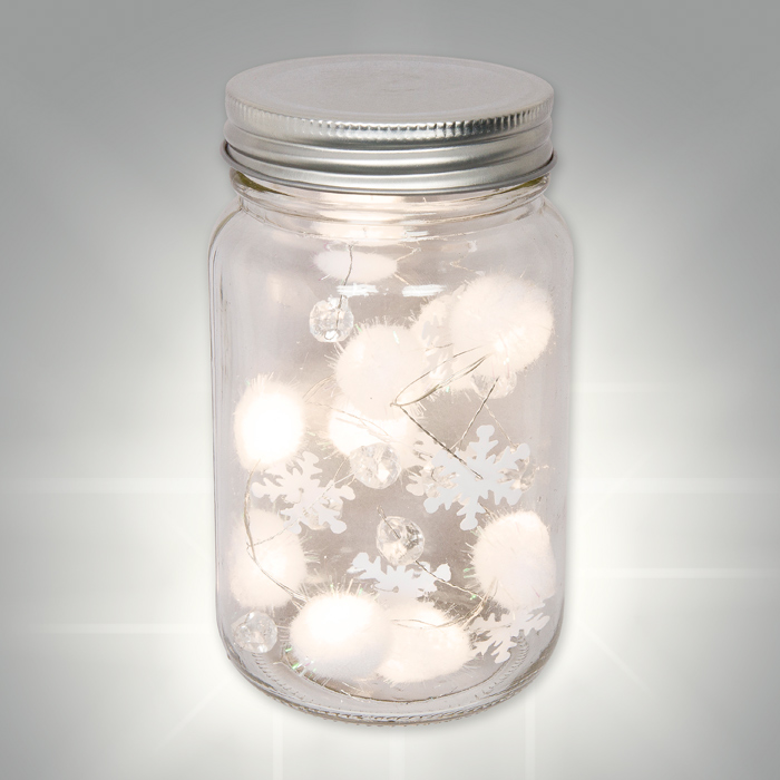 Produktinformationen: Befüllbares LED-Glas "Pompons" mit Schraubverschluss 85306