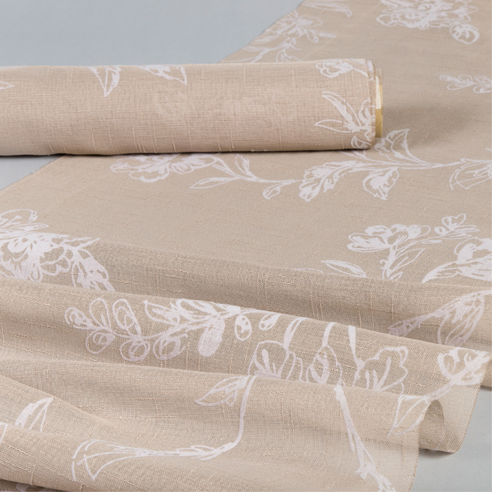 Produktinformationen: Dekostoff Leinenoptik mit Flockdruck "Blumenranke" 9581