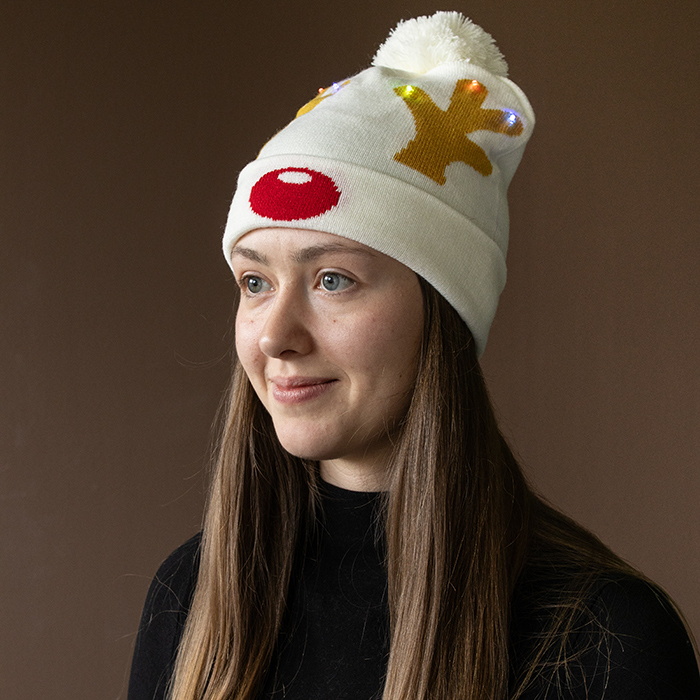 LED-Weihnachtsmütze "Rentier", Weihnachtsmarkt-/ Party-Mütze 96117