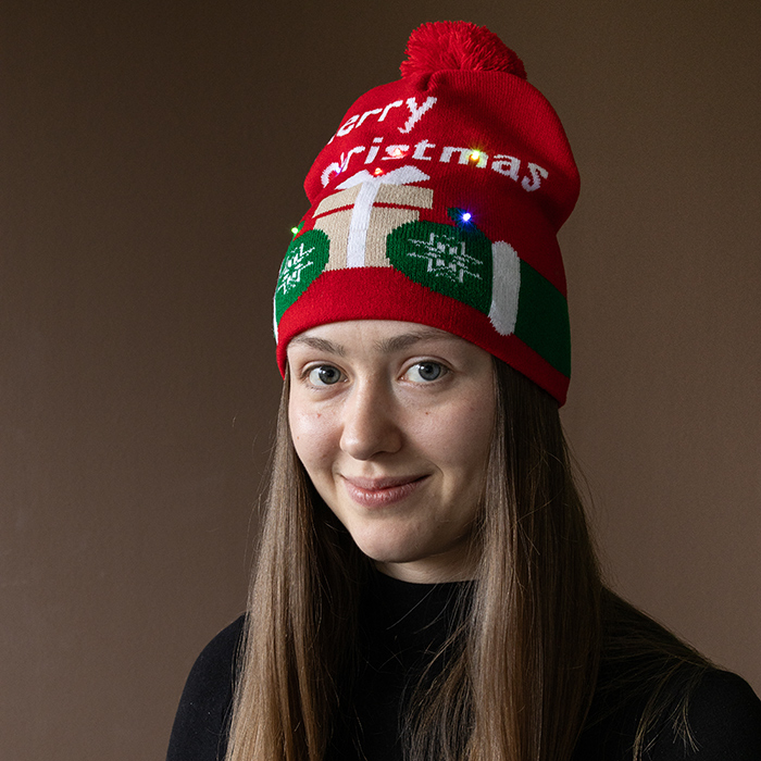 LED-Weihnachtsmütze "Merry Christmas", Strickmütze, Weihnachtsmarkt-/ Party-Mütze 96204