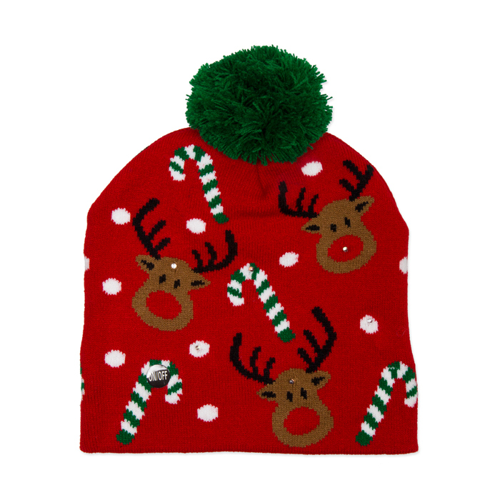 LED-Weihnachtsmütze "Elch", Strickmütze, Weihnachtsmarkt-/ Party-Mütze 96205