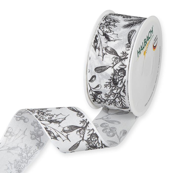 Product informations: printed christmas ribbon "Branches" cotton look 1006