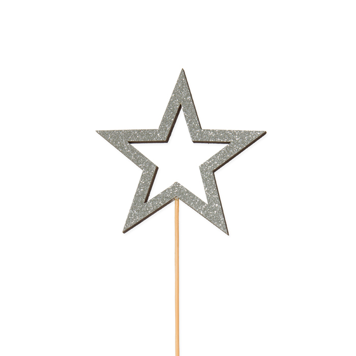 wooden stick "Glitter-Star", Ø ca. 8,5 cm und 15 cm 23353