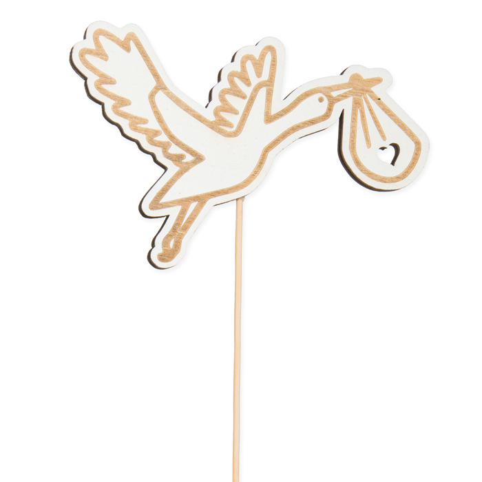 Product informations: wooden stick "Stork" with laser engraving, plant stick flower stick cake topper 23391