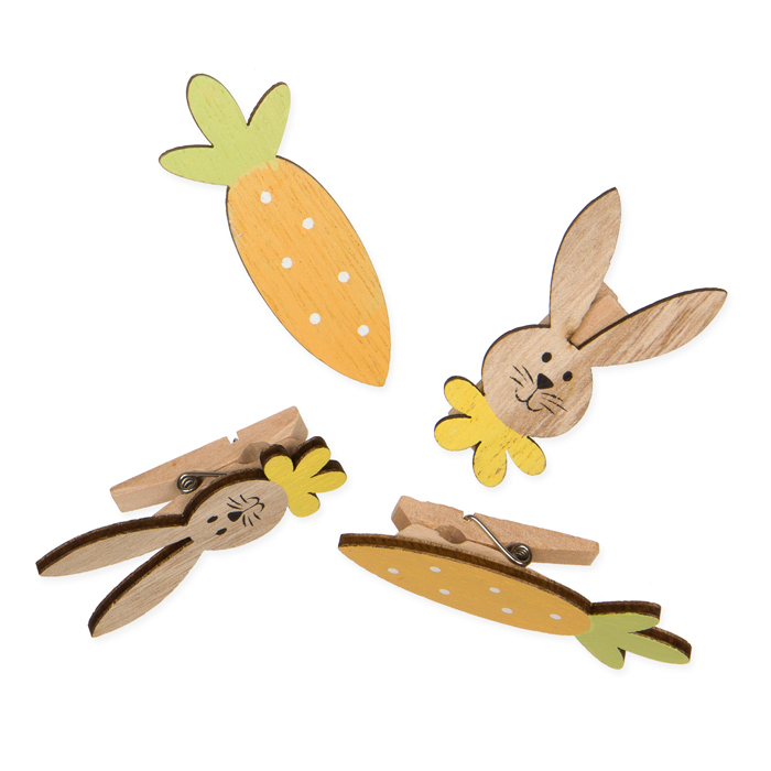 wooden deco clips "Rabbits/Carrots", Easter deco 23475