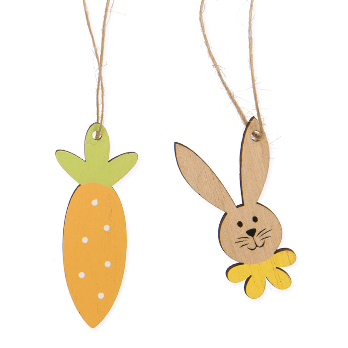 Product informations: wooden hanger "Rabbits/Carrots", Easter deco 23476