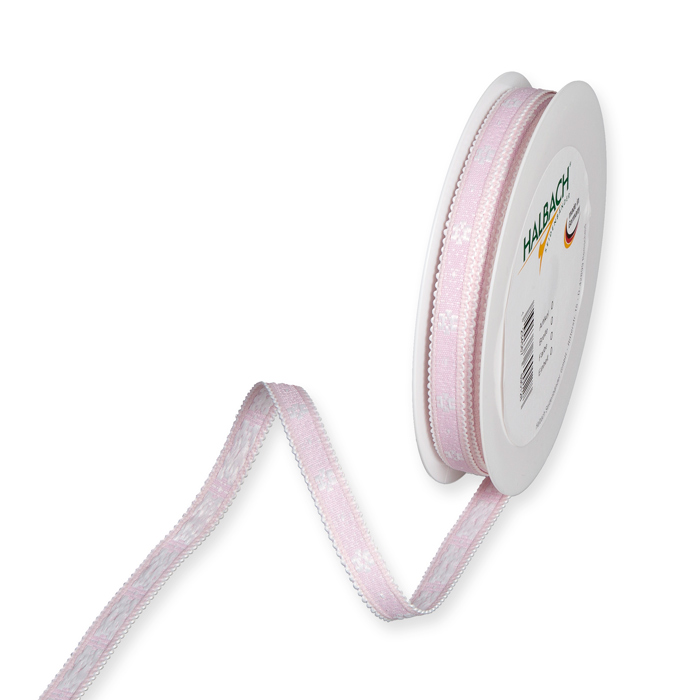 Product informations: decoration ribbon "Little Flowers" woven pattern / cotton look / fine bow edges 2884