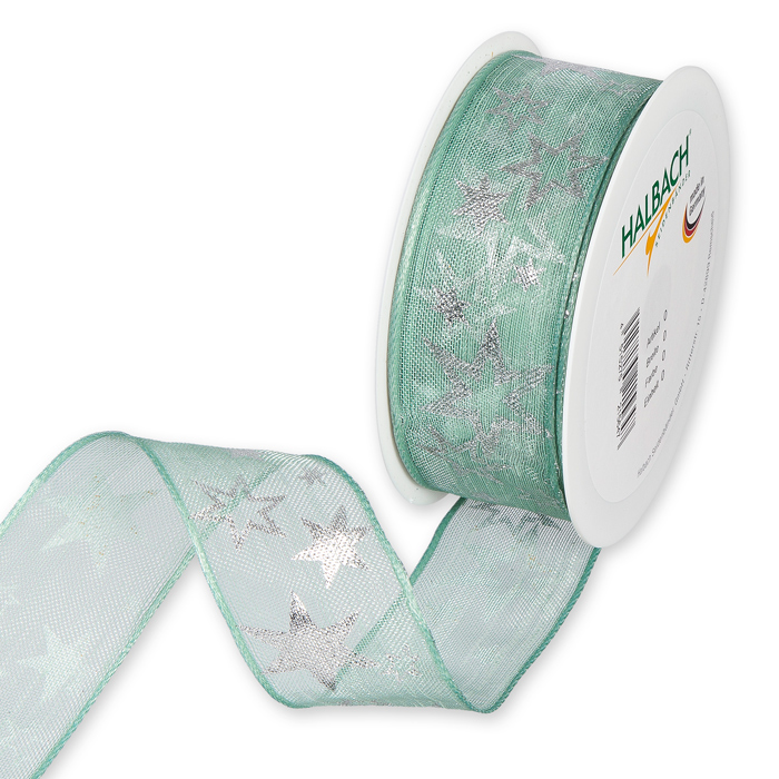 Product informations: transparent printed ribbon "Stars" linen look 574