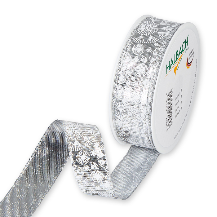 Product informations: printed lamé ribbon "Ice Flowers" 727