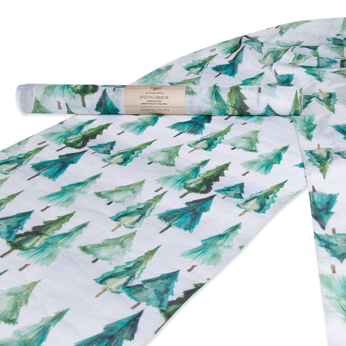 Product informations: deco fabric / table ribbon "Fir Trees" / digital print 74750
