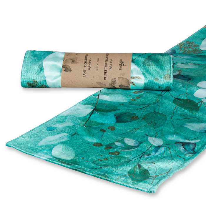 Product informations: velvet tabel runner " Eucalyptus" / digital print 74804
