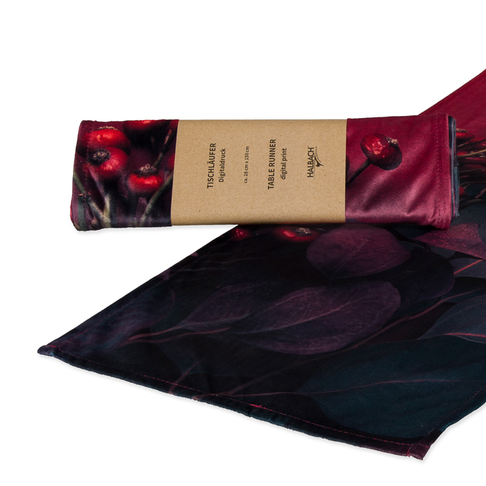 Product informations: velvet table runner "Eucalyptus and Berries" / digital print 74850
