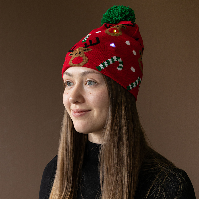 LED Christmas cap "Elk", knitted hat, Christmas beanie 96205