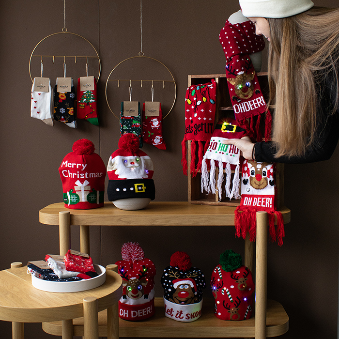 LED Christmas cap "Let it snow", knitted hat, Christmas beanie 96206
