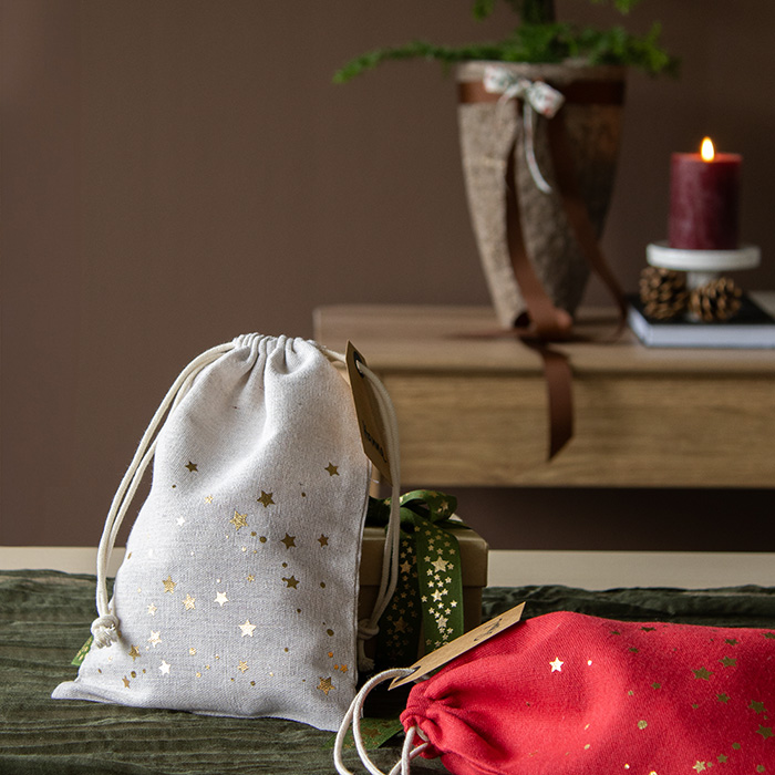 sustainable gift packaging made of fabric, reusable, washable